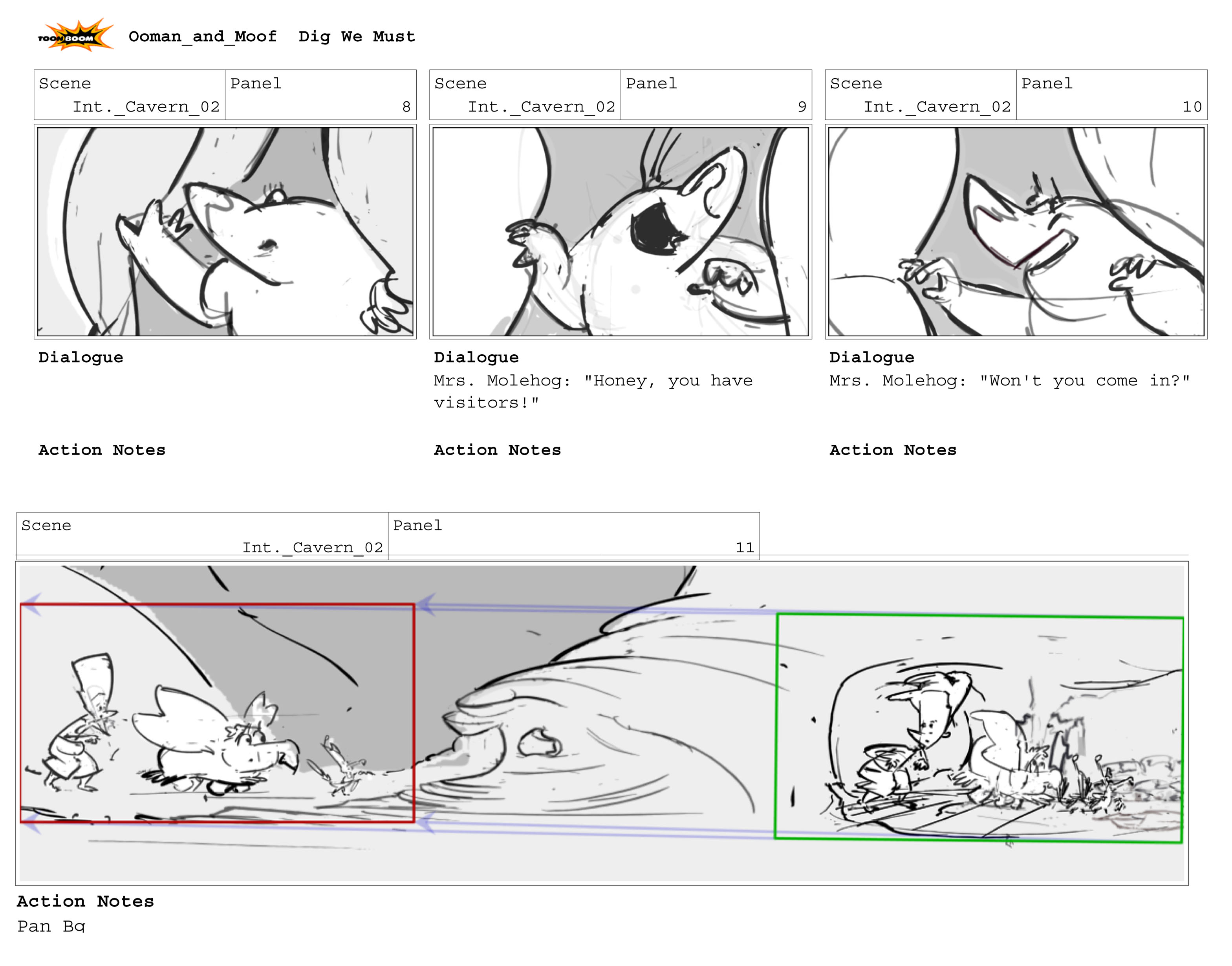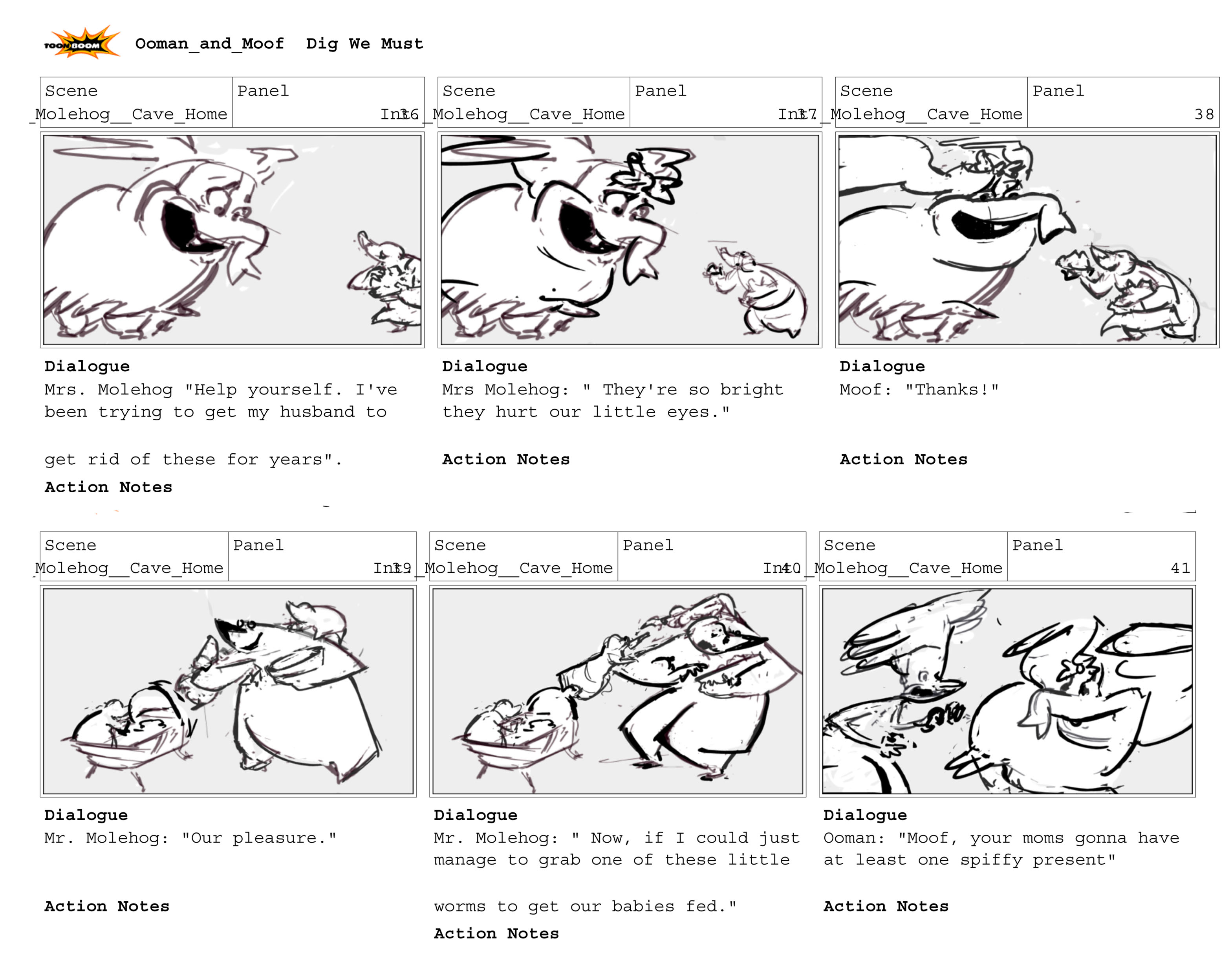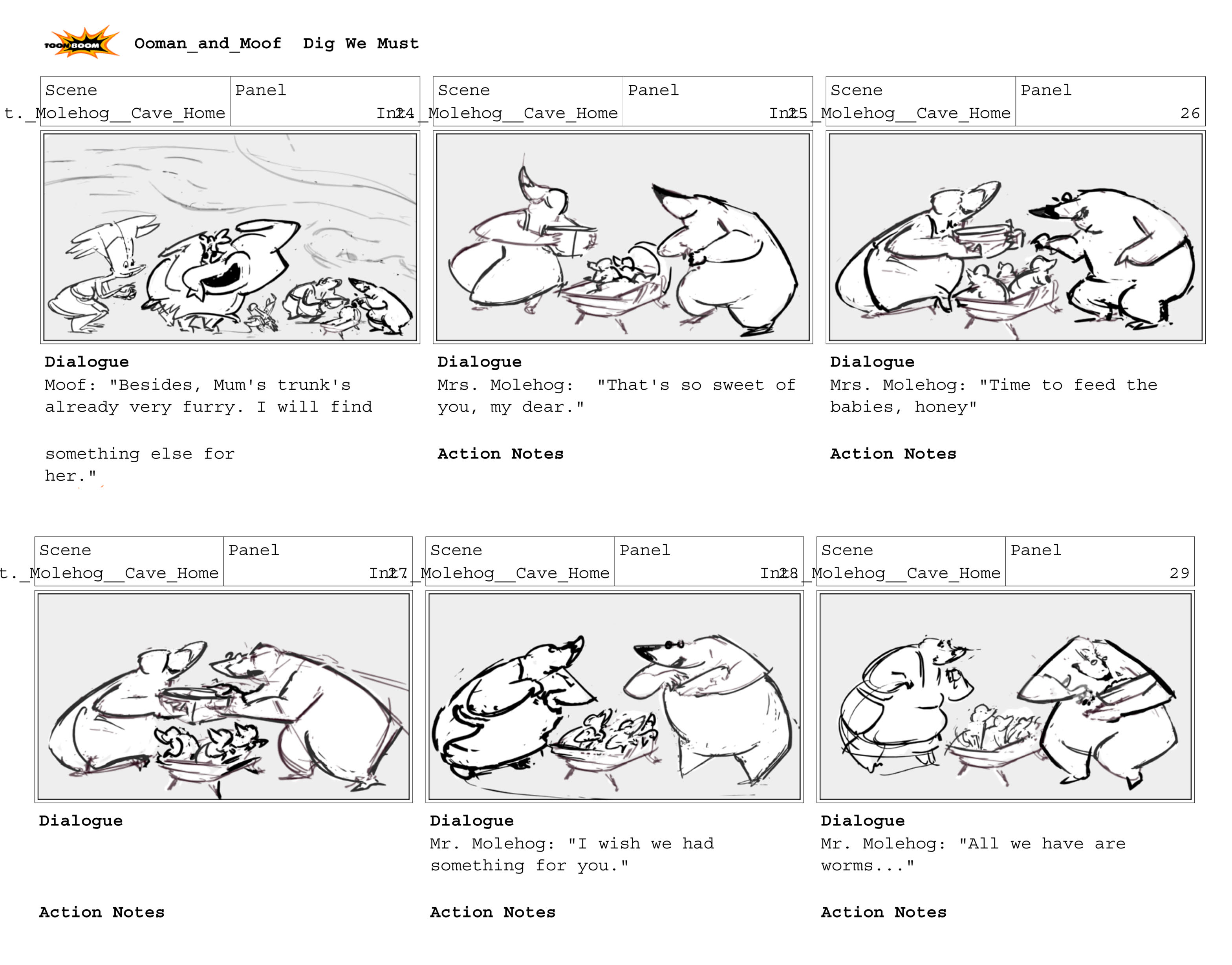 I was fortunate enough to meet Ben at Festivus where he generously reviewed my portfolio and sent me a copy of his script to practice and further develop my skills. Interpreting the script was a great exercise and really pushed my skills in staging, scene planning, and posing for 2D TV animation.