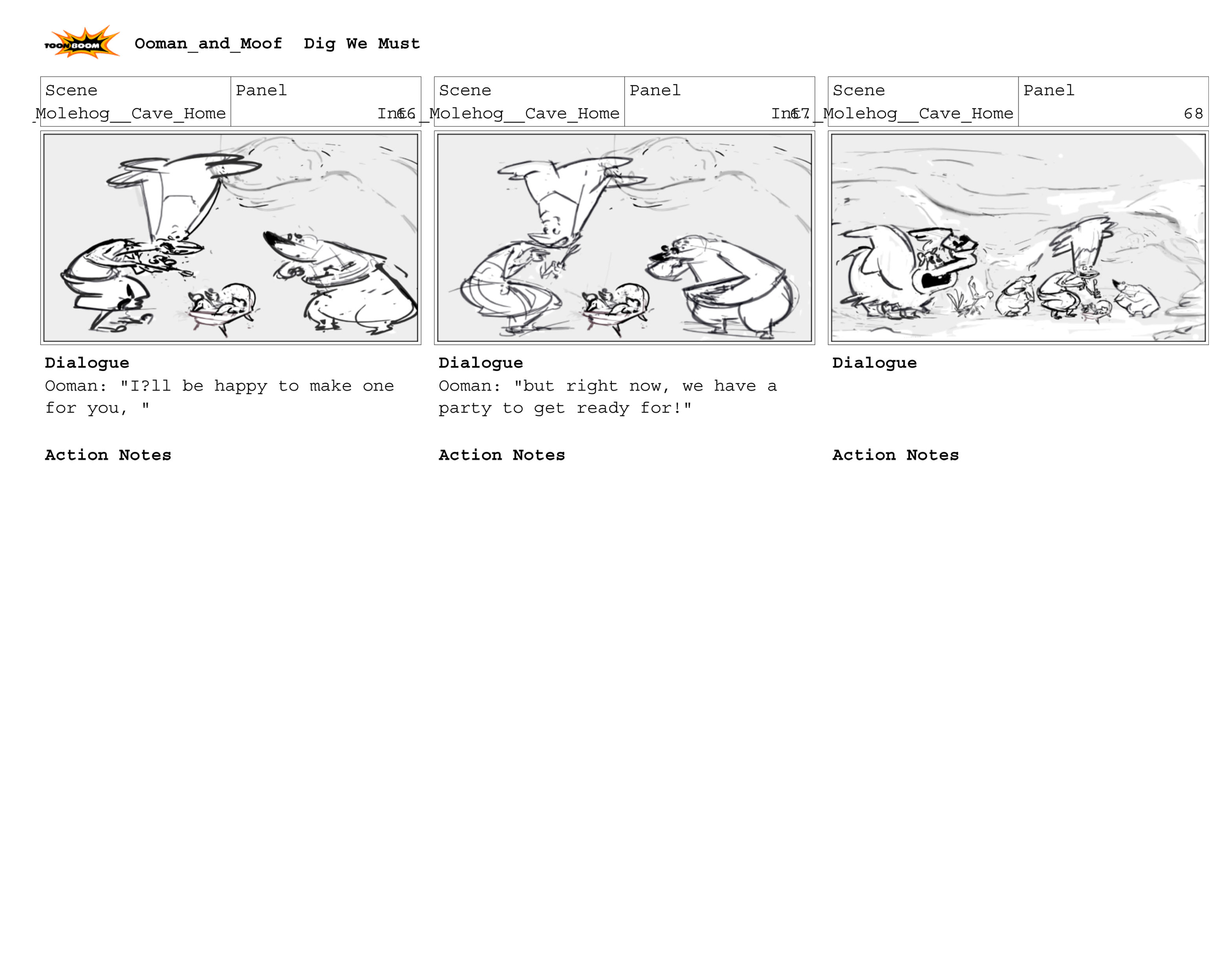 This practice sequence was based on the Ooman and Moof Script Created by Benedict Bowen and written by Craig Shemin.